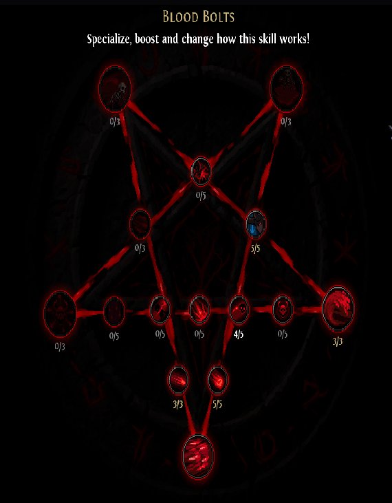 This Blood Bolts combination should be used across all of your passive tree variants. The key node here is Wave of Blood, which should be maxed out for the extra Movement Speed, FCR, and Arcane Damage. These bonuses are simply too efficient to ignore and add a lot of quality of life to the build, while also contributing meaningful damage.
