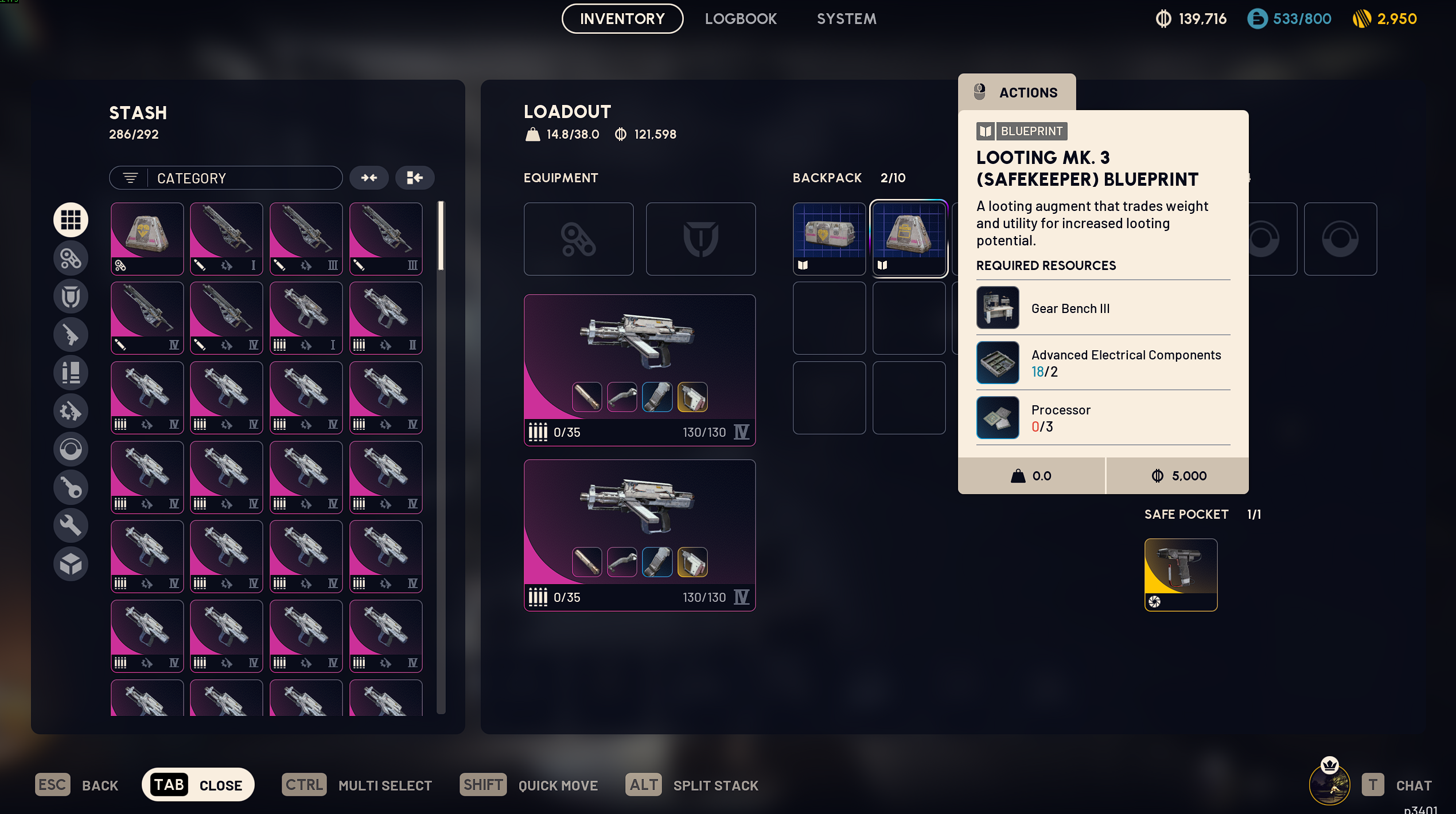 - **Blueprints:** 73/77 collected (includes Tempest, Survivor, Safekeeper, Vulcano, Bobcat, etc.)