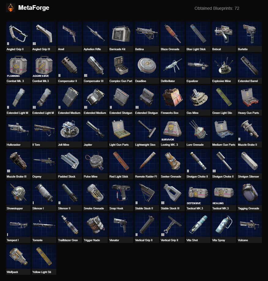 All blueprints - 74/77 BPs