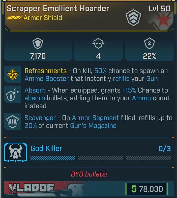 ⭐L50 HOARDER - 7.170 CAPACITY - 4 ARMOR SEGMENT - 22% DMG RED - 15% ABSORB BULLETS - 20% MAG REFILL⭐