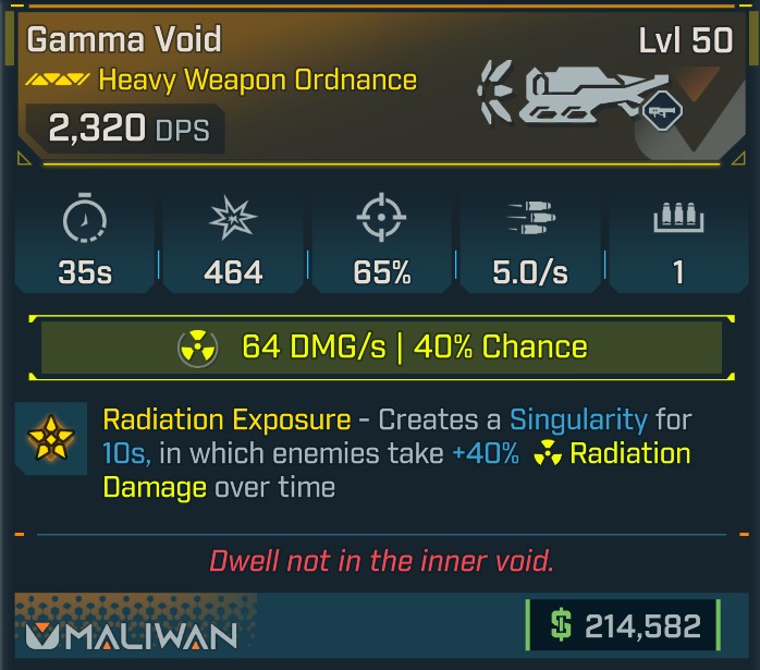 ⭐L50 GAMMA VOID - 2.320 DPS - 64 RADIATION DMG/s - 35s COOLDOWN - 65% ACCURACY - 5.0/s FIRE RATE⭐