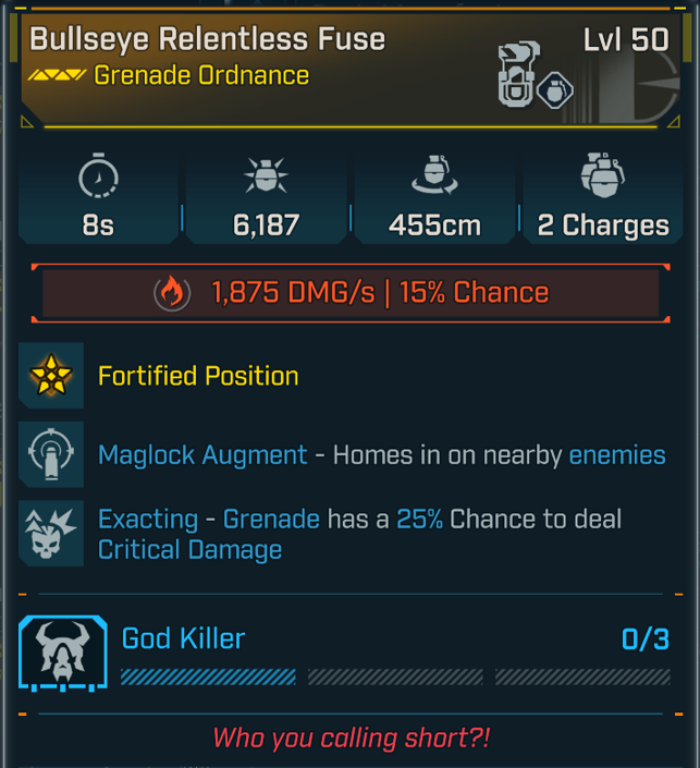 Bullseye Relentless Fuse (Incendiary) | Grenade