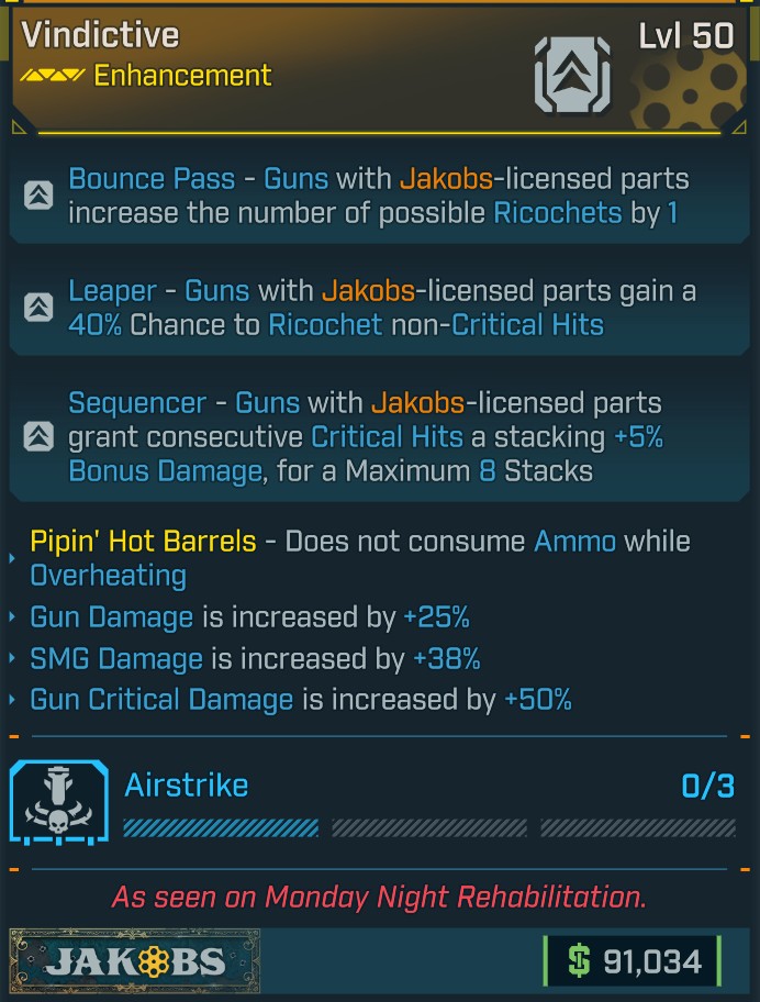 ⭐[MODDED] L50 ENHANCEMENT (JAKOBS) - 3 PERKS - 25% GUN DMG - 38% SMG DMG - 50% GUN CRITICAL DMG⭐