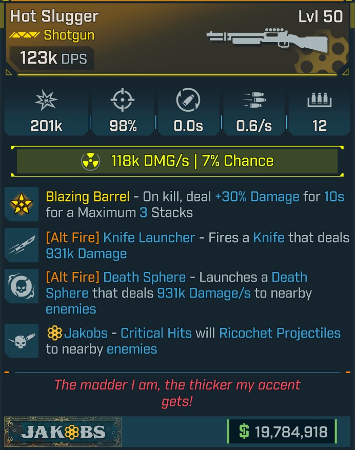⭐[MODDED] L50 HOT SLUGGER - 123K DPS (+118K RAD DMG/S) - DEATH SPHERE 931K DMG/S - KNIFE 931K DMG⭐