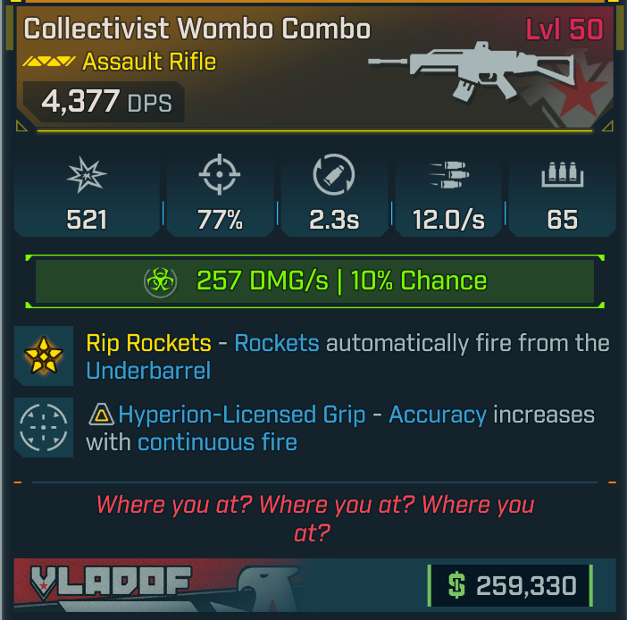 ◉ Armored Bod ◉ Looming Rainbow Vomit ◉ Collectivist Vombo Combo ◉ Looming Dullahan ◉ Mega Insulating Kill Spring ◉ Booming Vivisecting Throwing Knife ◉ Hot Slugger (shotgun) ◉ Barrage Vigorous Firewerks ◉ Resonant Stoic Super Soldier ◉ Large Tripple Bypass