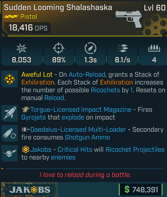 [GODROLL] Shalashaska [Jakobs crit, Torgue impact, shotgun ammo] (Jakobs pistol)