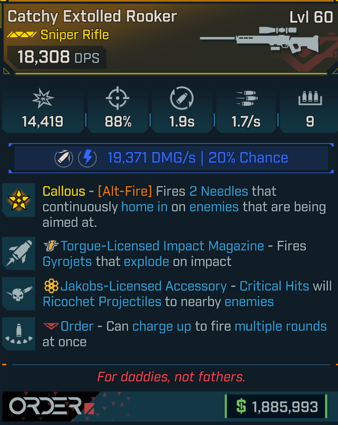 [GODROLL] Rooker [Jakobs crit, Torgue impact, Order rounds] (Order sniper)