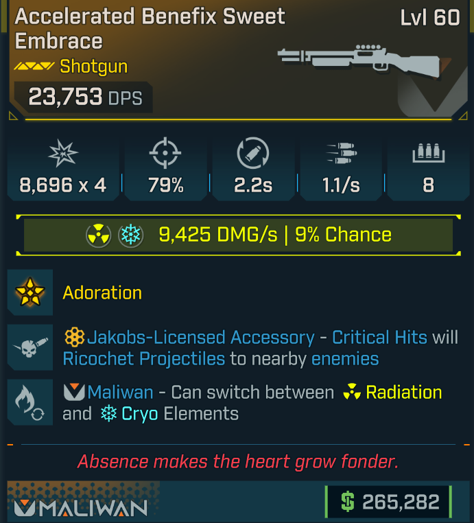[GODROLL] Sweet Embrace [radiation/cryo] [Jakobs crit] (Maliwan shotgun)