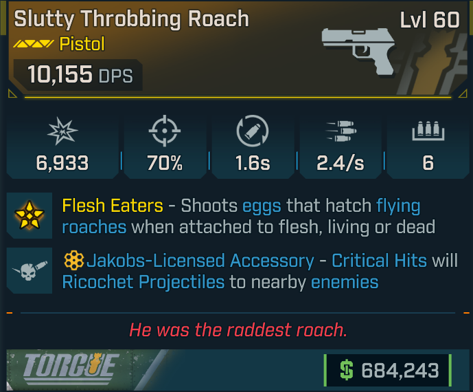 [GODROLL] Roach [Jakobs crit] (Torgue pistol)