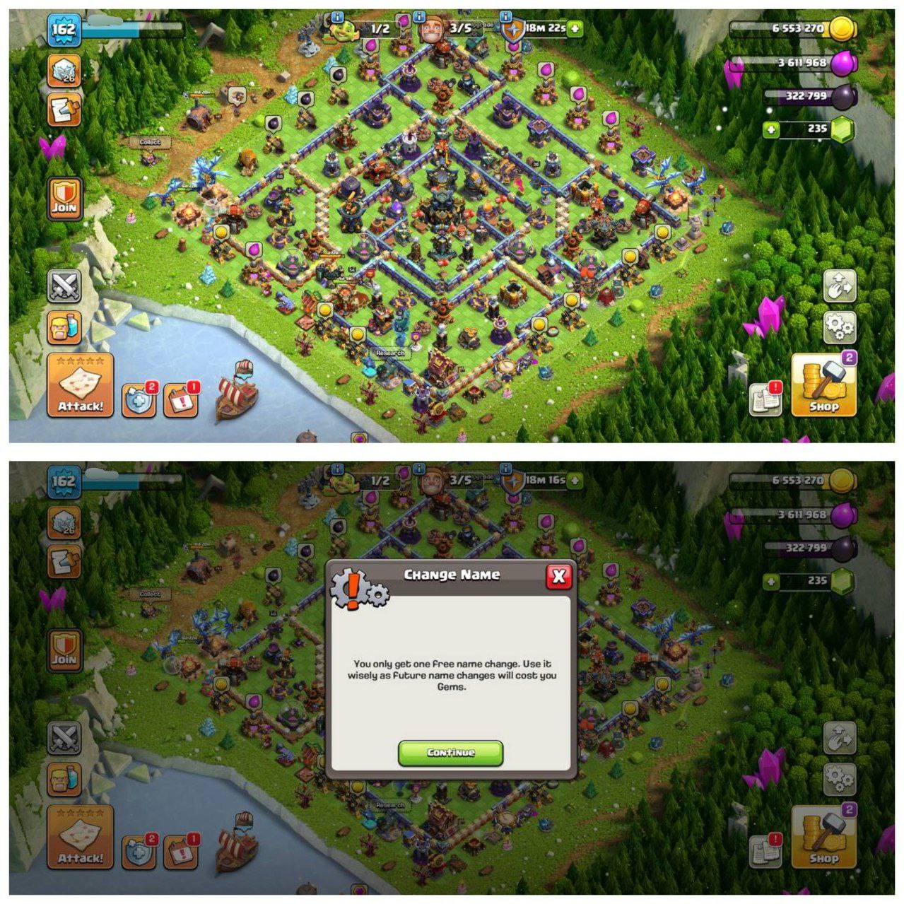2). To change the game Gmail and in-game number (from within the game), you must wait for 10 days (SUPERCELL RULE) after logging into the game for the game to verify your phone. During this period, no verification code will be sent for changing Gmail and number.