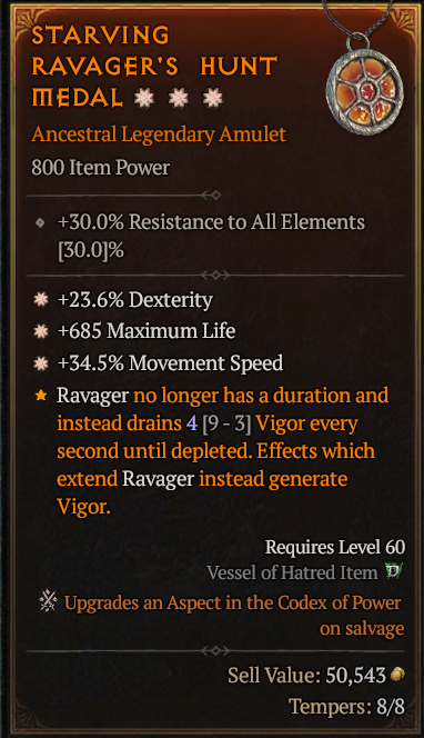 (S10) Legendary Amulet 3GA - Dexterity - Maximum Life - Movement Speed