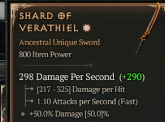 800 IP 1GA Shard of Verathiel - random stats - Season 10