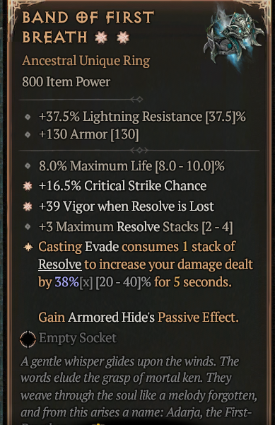 2GA Band of First Breath (38/40) GA Crit Chance - GA Vigor when resolve is lost