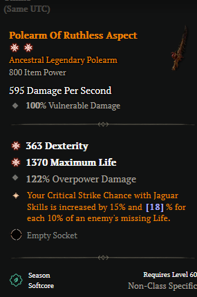 SEASON 10 2 GA POLEARM GA DEXTERITY + GA MAXIMUM LIFE SPIRITBORN POLEARM RAKE PAYBACK STINGER TOUCH