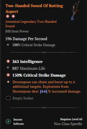 SEASON 10 2 GA TWO HAND SWORD GA INTELLIGENCE + GA CRITICAL STRIKE DAMAGE SHADOWBLIGHT NECROMANCER