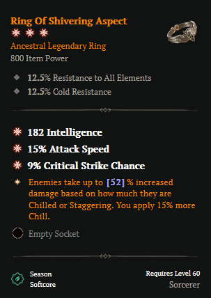 SEASON 10 3 GA RING INTELLIGENCE ATTACK SPEED CRITICAL STRIKE CHANCE MINION NECROMANCER RING SORCERE