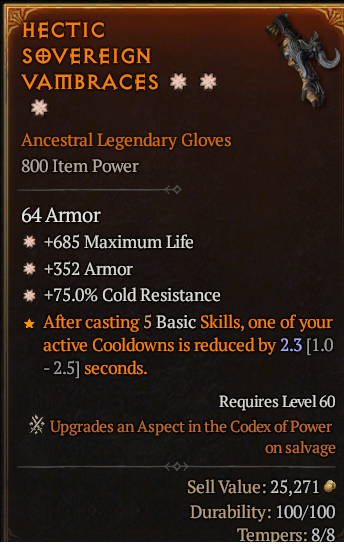 SEASON 10 3 GA GLOVES 352 ARMOR + 685 MAX LIFE +75% COLD RESISTANCE 3GA GLOVES 3GA DEFANSIVE GLOVES