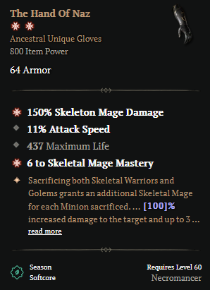 SEASON 10 2 GA THE HAND OF NAZ GA SKELETAL MAGE MASTERY + SKELETAL MAGE DAMAGEUNIQUE MINION NECROMAN