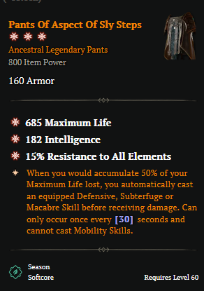 SEASON 10 3 GA PANTS INTELLIGENCE + MAXIMUM LIFE + ALL RESISTANCES 3GA NECROMANCER PANTS 3GA SORCERE