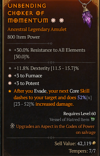 SEASON 10 2 ga SPIRITBORN amulet +3 POTENT +3 FURNACE 11.8% DEXTERITY 2GA SPIRITBORN AMULET