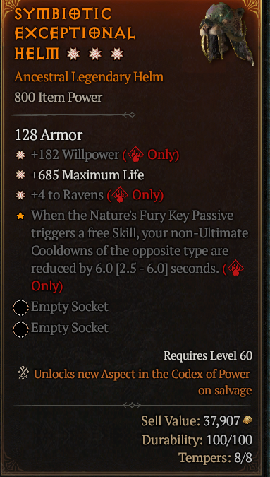 SEASON 10 3 GA COMPANION DRUID HELM +4 RAVENS WILLPOWER MAX LIFE 3GA RAVEN DRUID HELM 3GA COMPANION