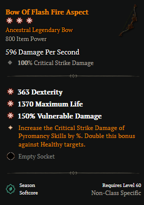 SEASON 10 3 GA BOW DEXTERITY + MAX LIFE + VULNERABLE DAMAGE HEARTSEEKER ROGUE BOW