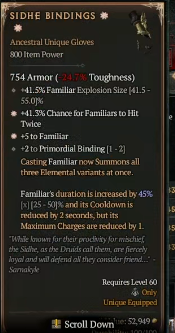 2GA Sidhe Bindings (45/50) GA Familiar / GA Chance Familiars Hit Twice