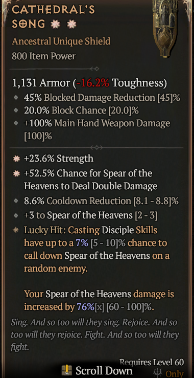 2GA Cathedral's Song (7/10) GA Strength / GA Chance Spear of the Heavens Deal Double Damage