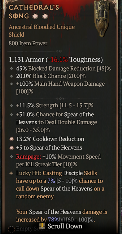 2GA Cathedral's Song (7/10) GA +5 Spear of the Heavens / GA Cooldown Reduction