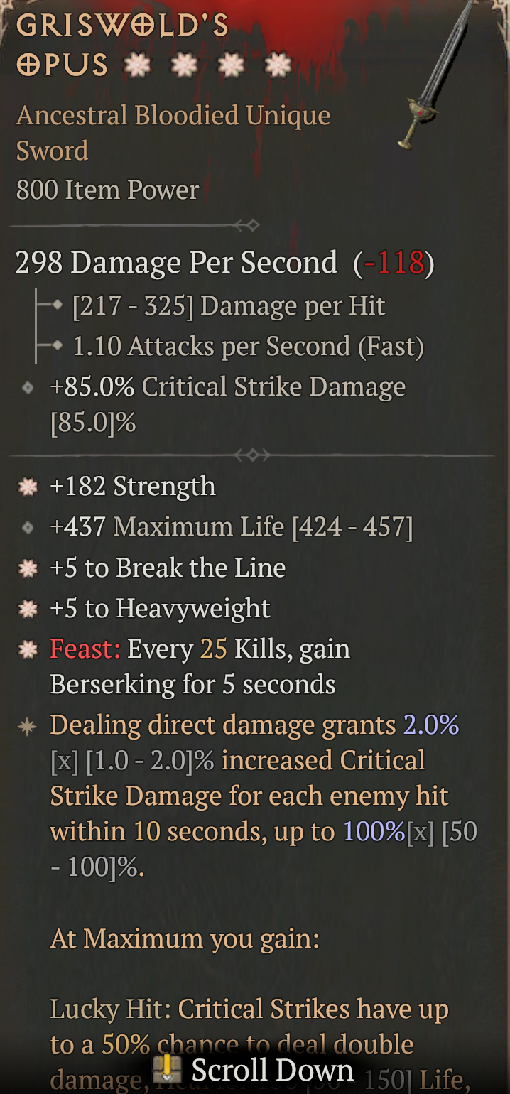 S12 ⭐ Diablo 4⭐ 4GA Griswold Opus ⭐Perfect Rolls for Season 12 with Berserking GA⭐ Image Attached
