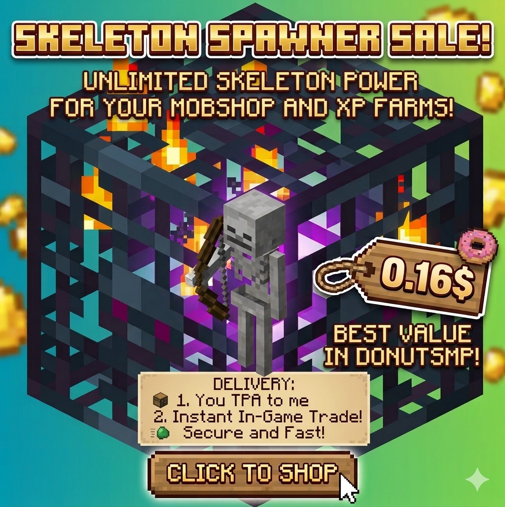 At this price, these spawners pay for themselves almost instantly. Skeleton spawners are the #1 requirement for anyone serious about the DonutSMP economy.