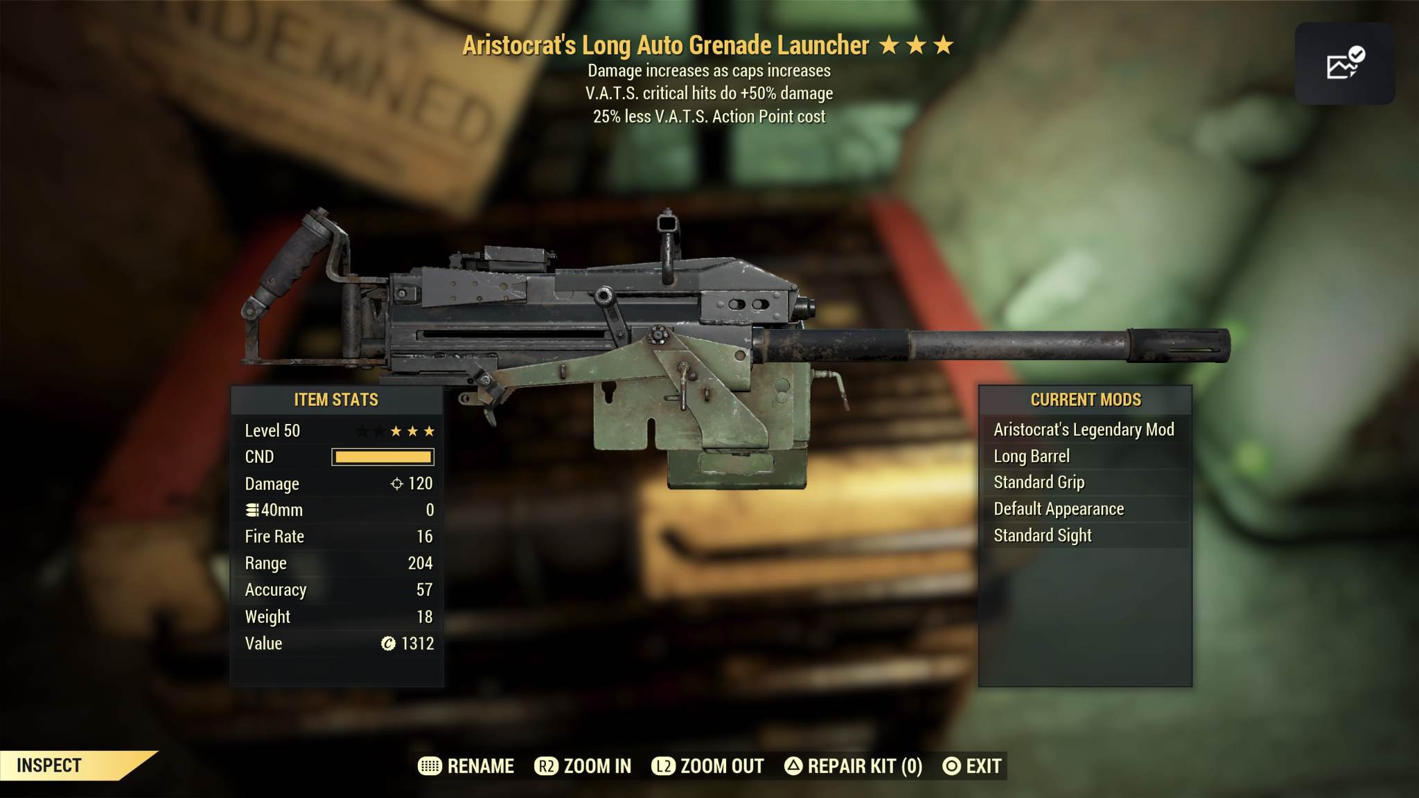 aristocrat vats crit 50% dmg less vats costs grenade launcher