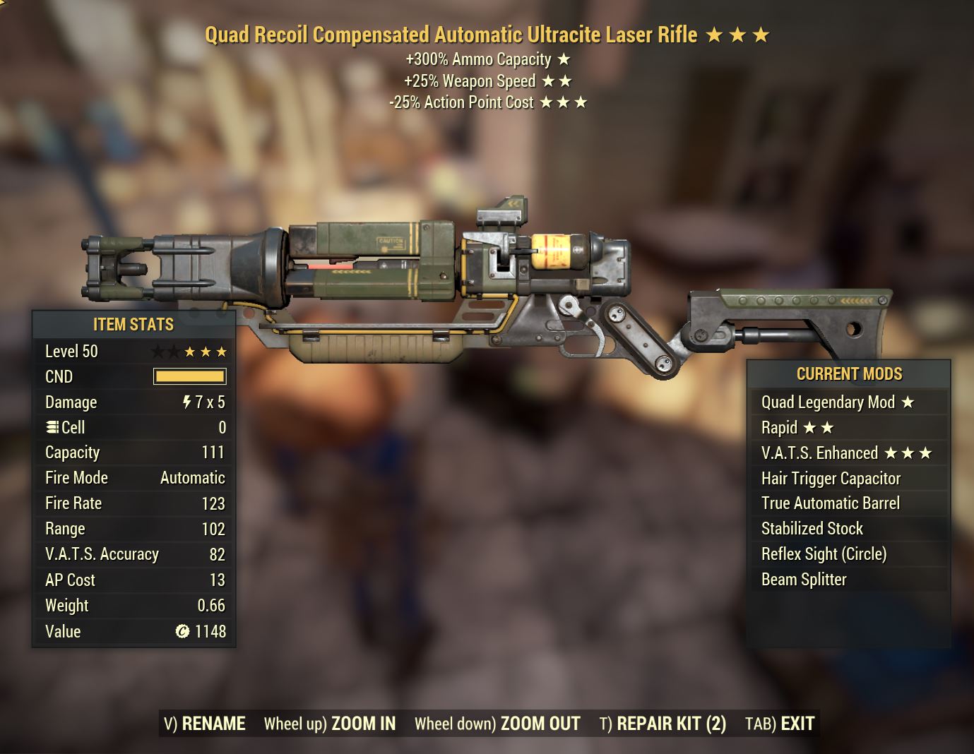 Quad Ultracite Laser Rifle (Quad,25% faster fire rate, 25% less vats ap cost)