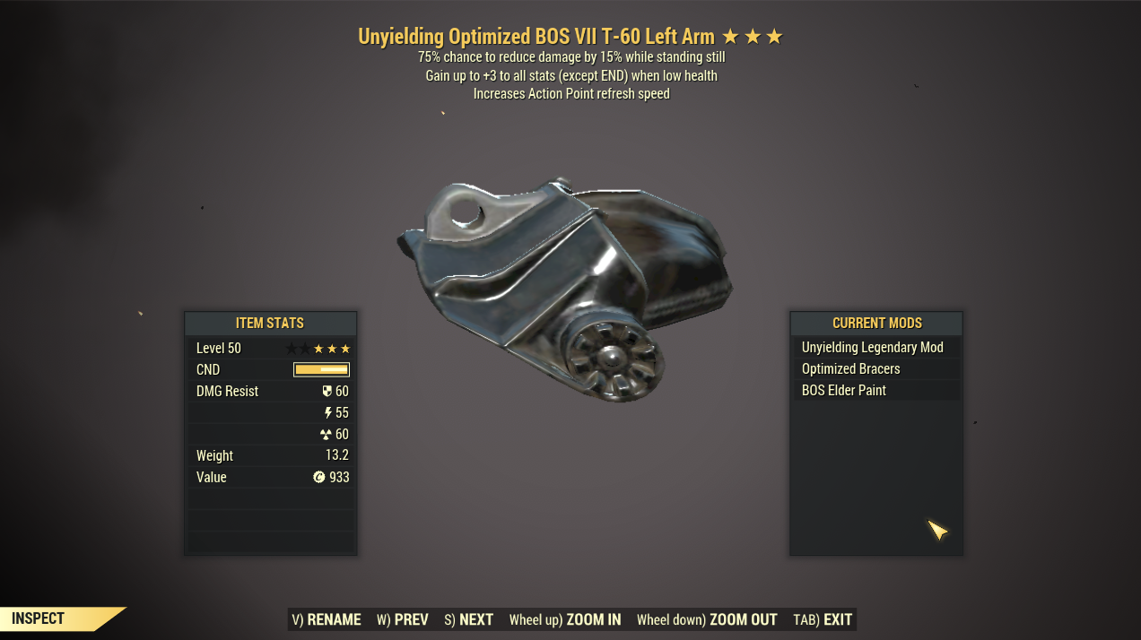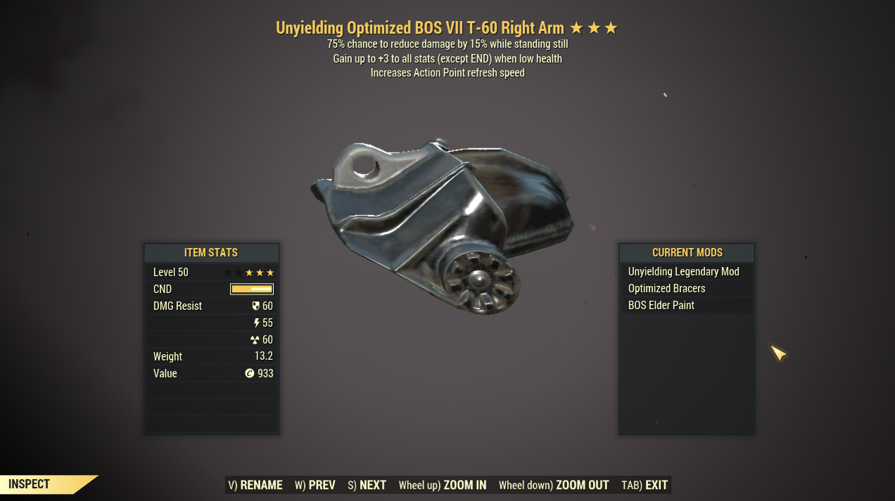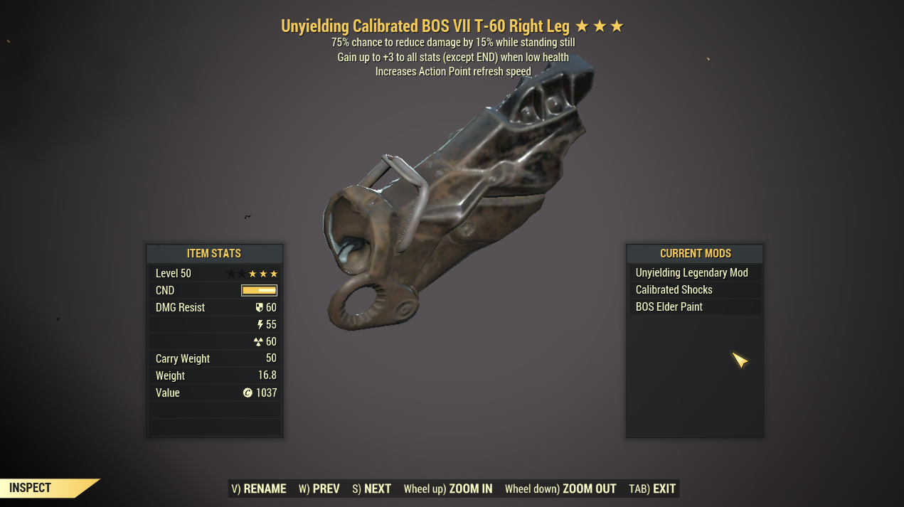 [Legendary Power Armor] Unyielding T-60 Sentinel Power Armor Set (5/5 FULL AP REFRESH)