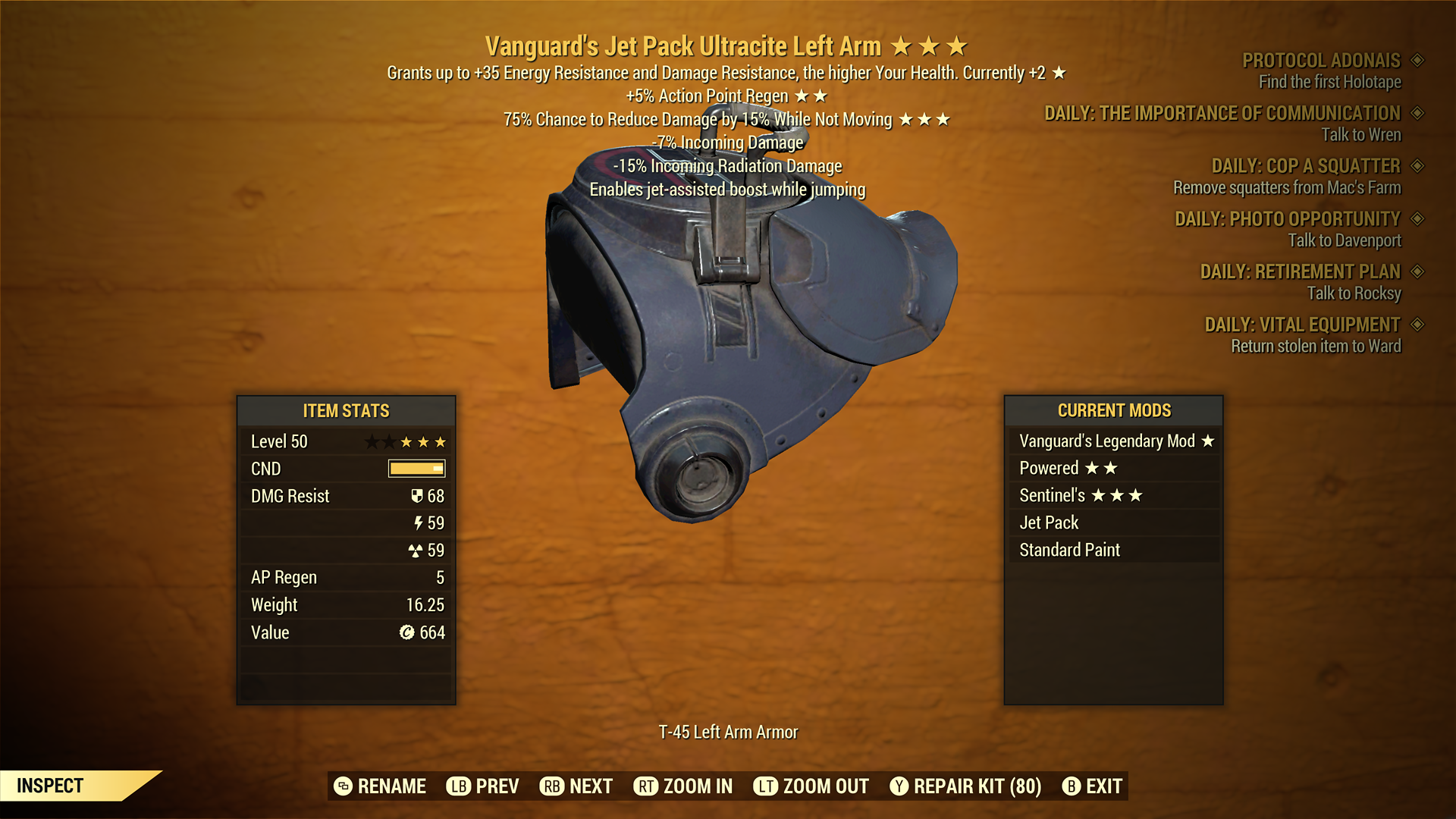 Vanguard's Sentinel Jet Pack Arm Ultracite PA 6/6 Full Set