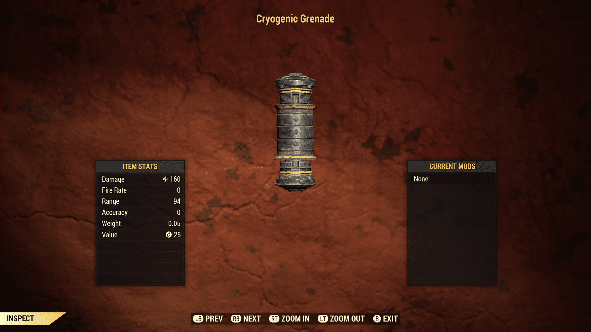 This listing includes 200 units of Cryogenic grenades, an item under the 'weapons' category.
