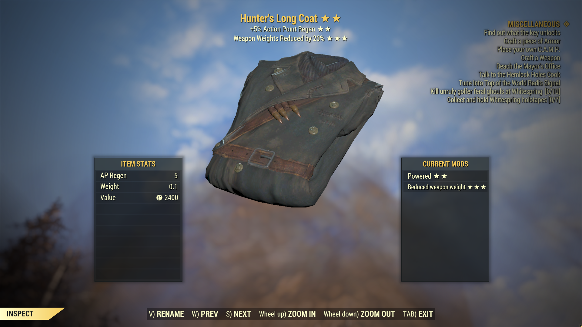 Hunters Long Coat (+5% Action Point Regen, Weapon Weights Reduced by 20%)