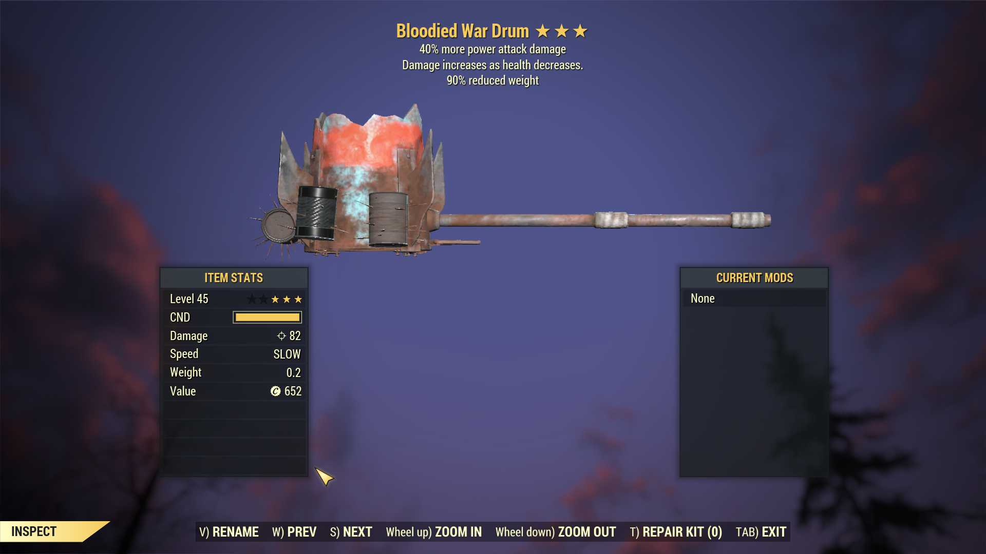 Bloodied War Drum (+40% damage PA, 90% reduced weight)