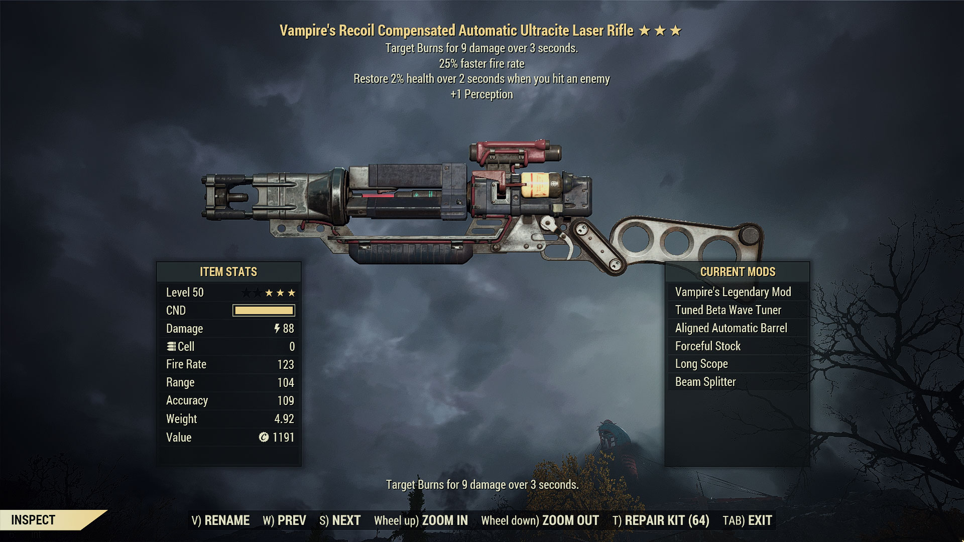 Vampire's Ultracite Laser Rifle Installed Modifications: