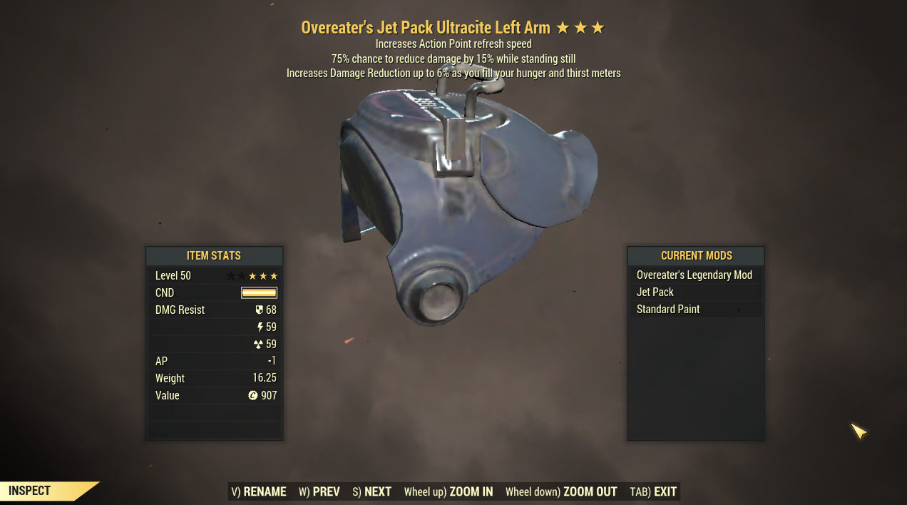 Overeater's Sentinel Ultracite Power Armor [3 AP Refresh + 2 Poison Resist ] JetPack + Protocols