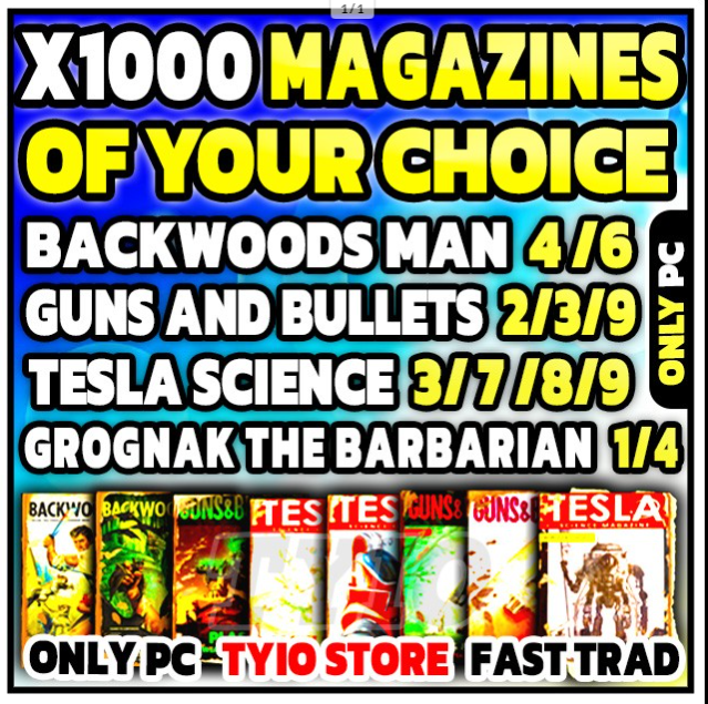 X1000 Magazines of your choice ( BACKWOODS MAN 4 /6 -Tesla Science 3/ 7 /8 -Guns and Bullets 2/3/9)