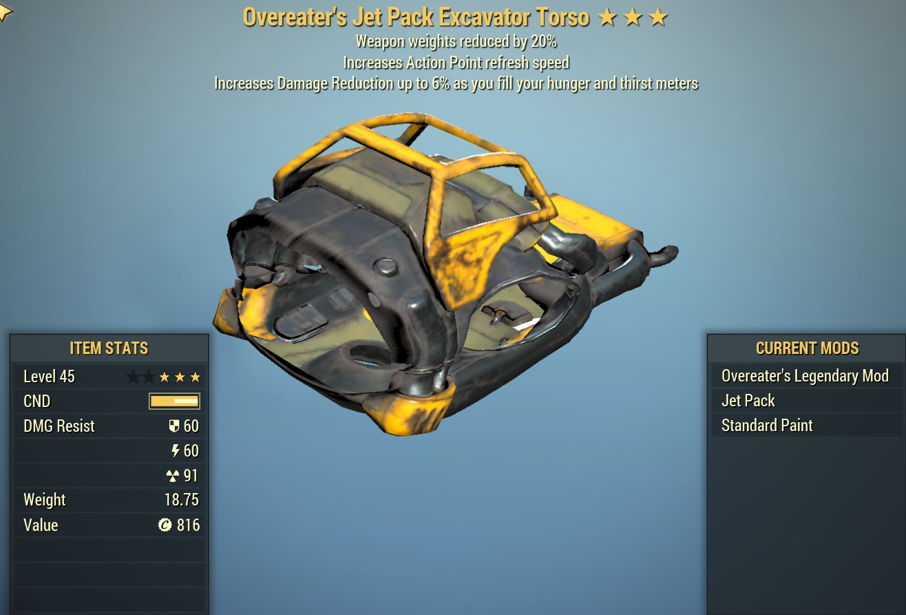 Excavator Overeater's [Full SeT] [5/5 AP-Weapon weight 20%](Jet Pack in Torso)[Power Armor]