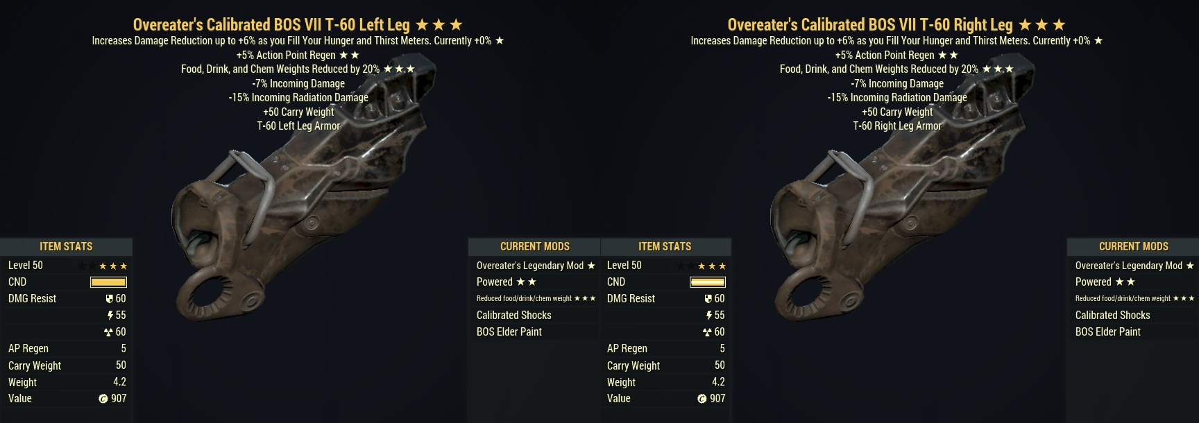 [PC] Overeater's T-60 Power Armor Set (5/5 Food, Drink, and Chem Weights Reduction) (5/5 AP refresh)