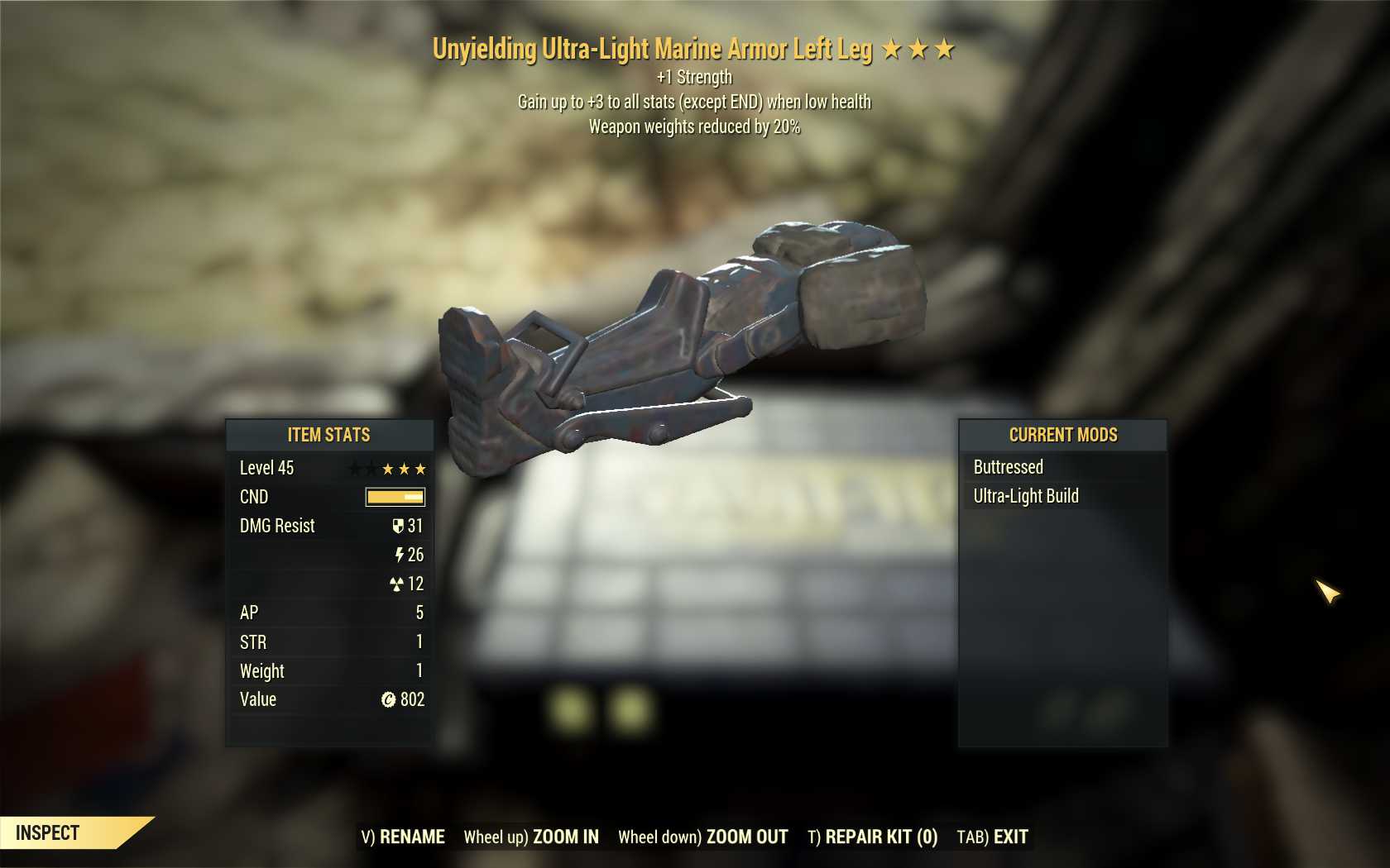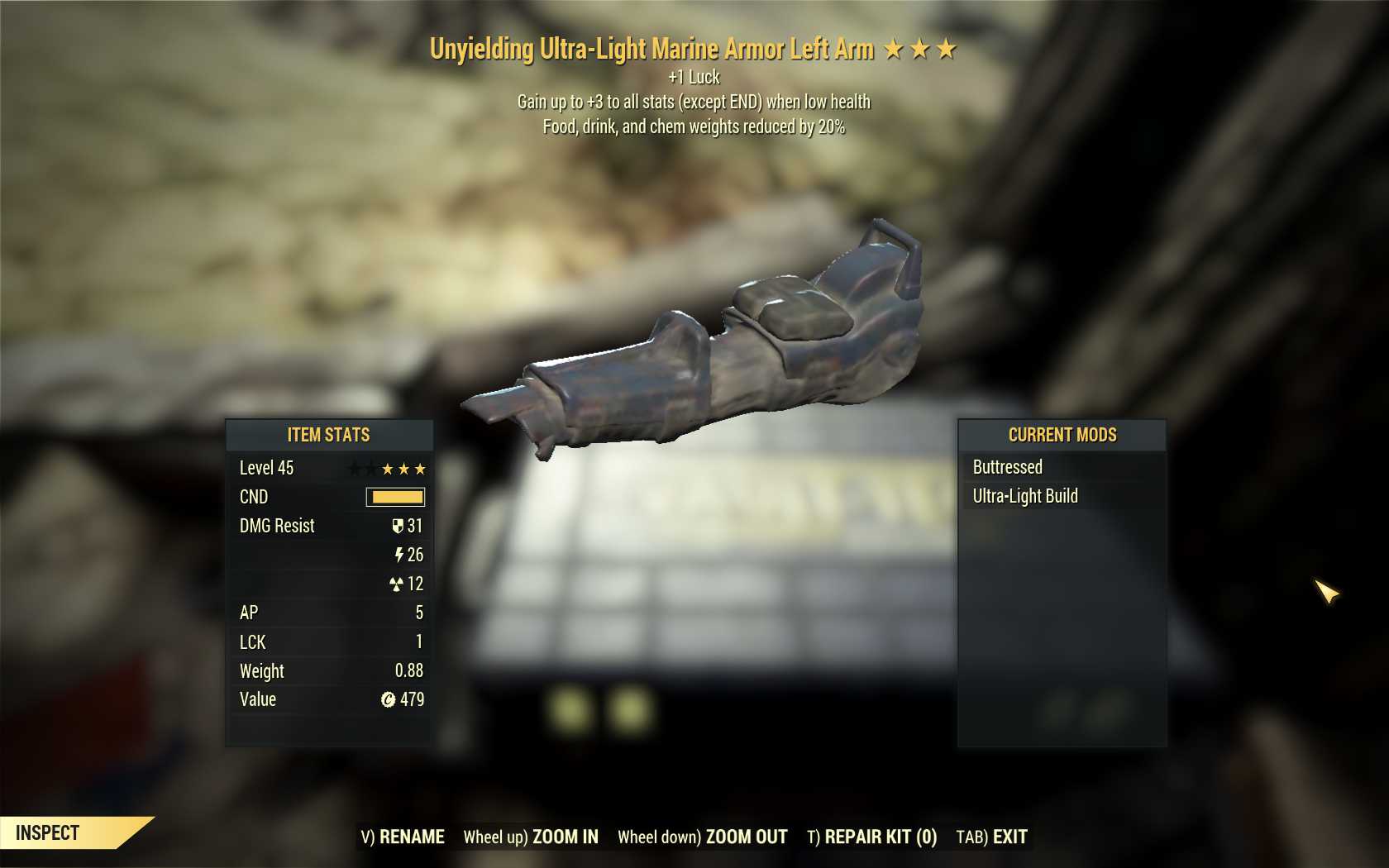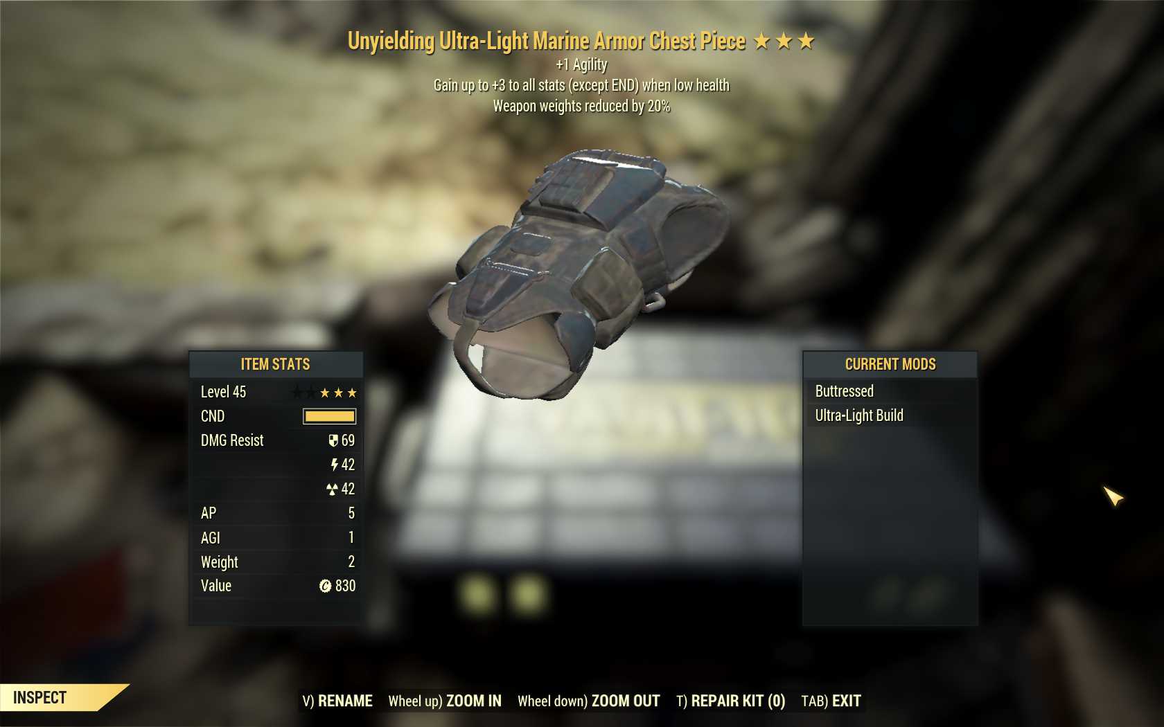 Unyielding Marine Armor Set (-40% Weapon Weight, -40% Food Drink Chem Weight, -20% junk weight)