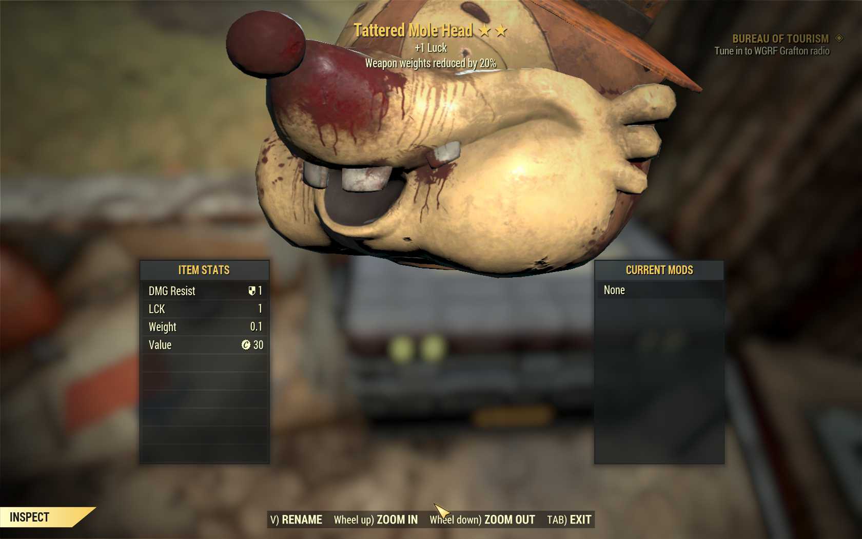 [LUCK WWR] Weapon Weight Reduction Tattered Mole Head (LUCK) [Legendary outfit]
