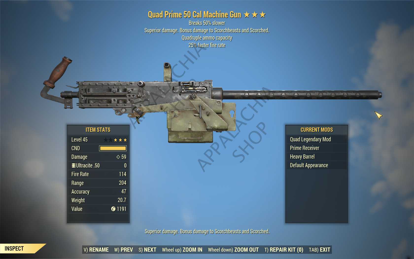 Quad 50 Cal Machine Gun (25% faster fire rate, Breaks 50% slower)