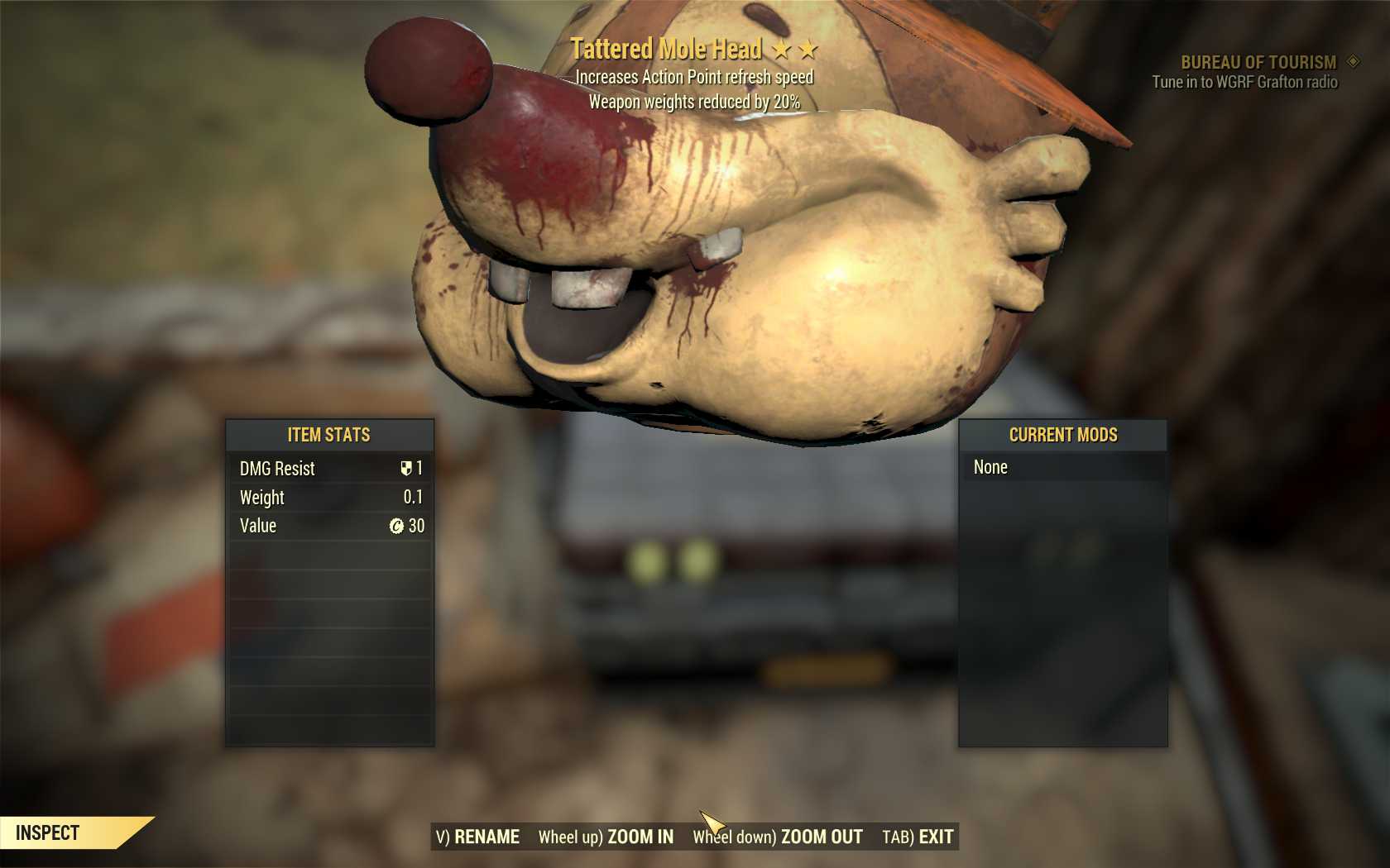 [AP WWR] Weapon Weight Reduction Tattered Mole Head (AP REFRESH) [Legendary outfit]