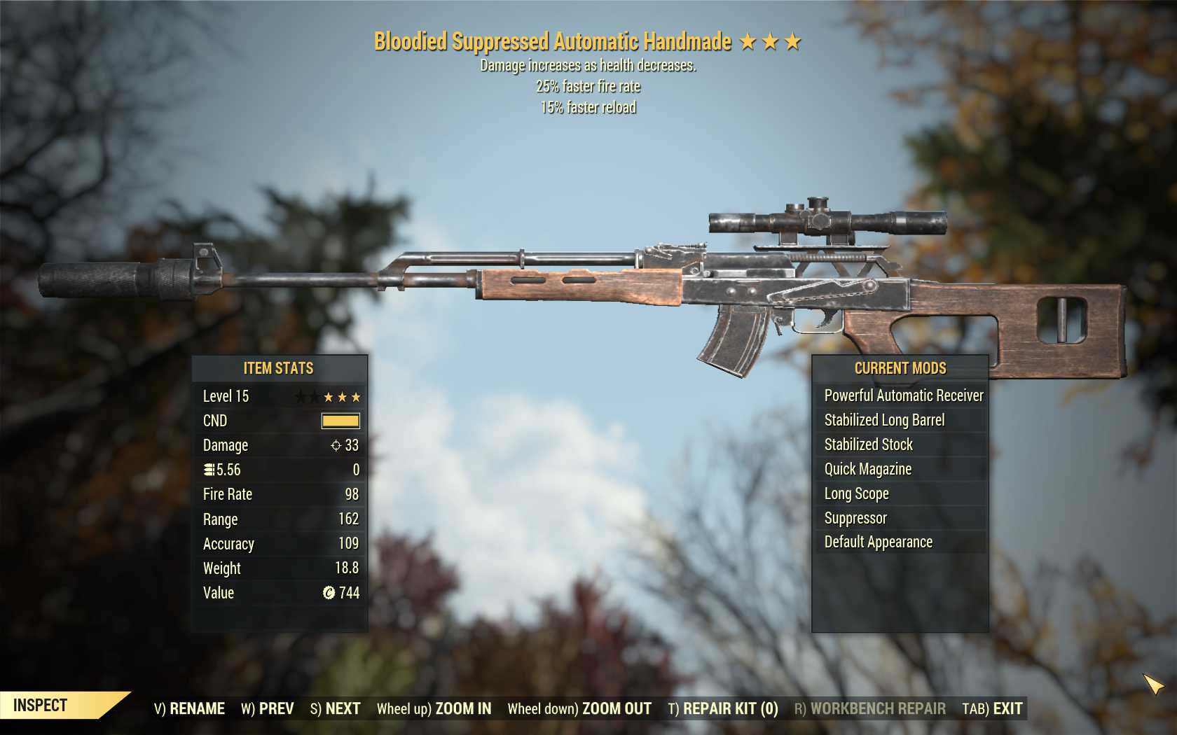 [LOW LEVEL, 15 level]Bloodied Handmade (25% faster fire rate, 15% faster reload)