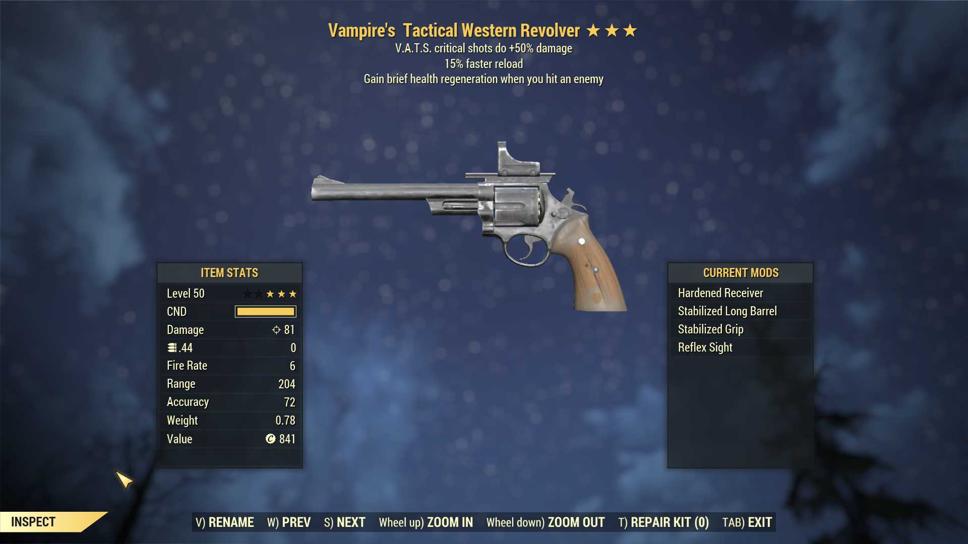 Vampire's Western Revolver (+50% critical damage, 15% faster reload)