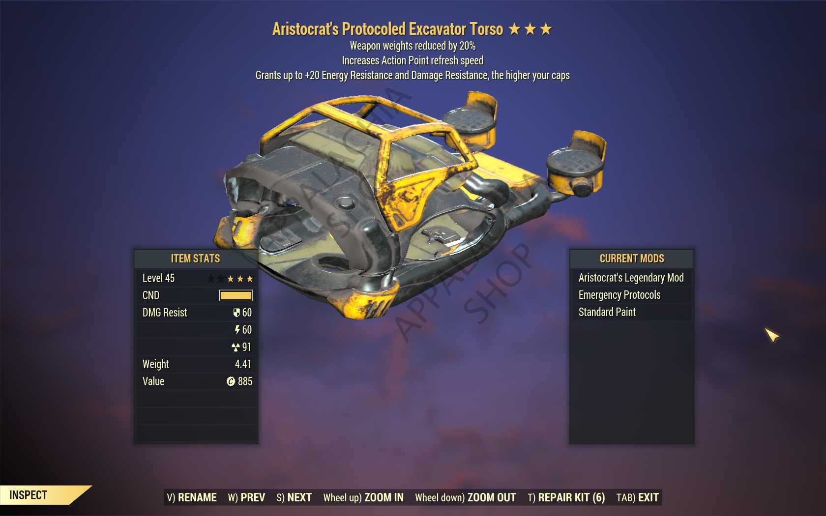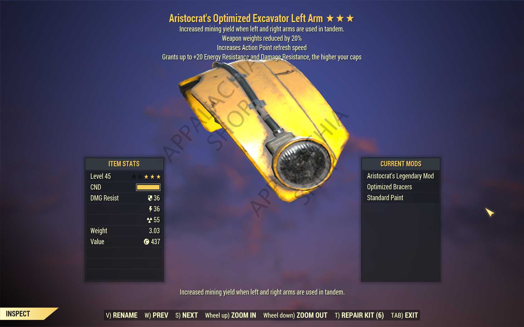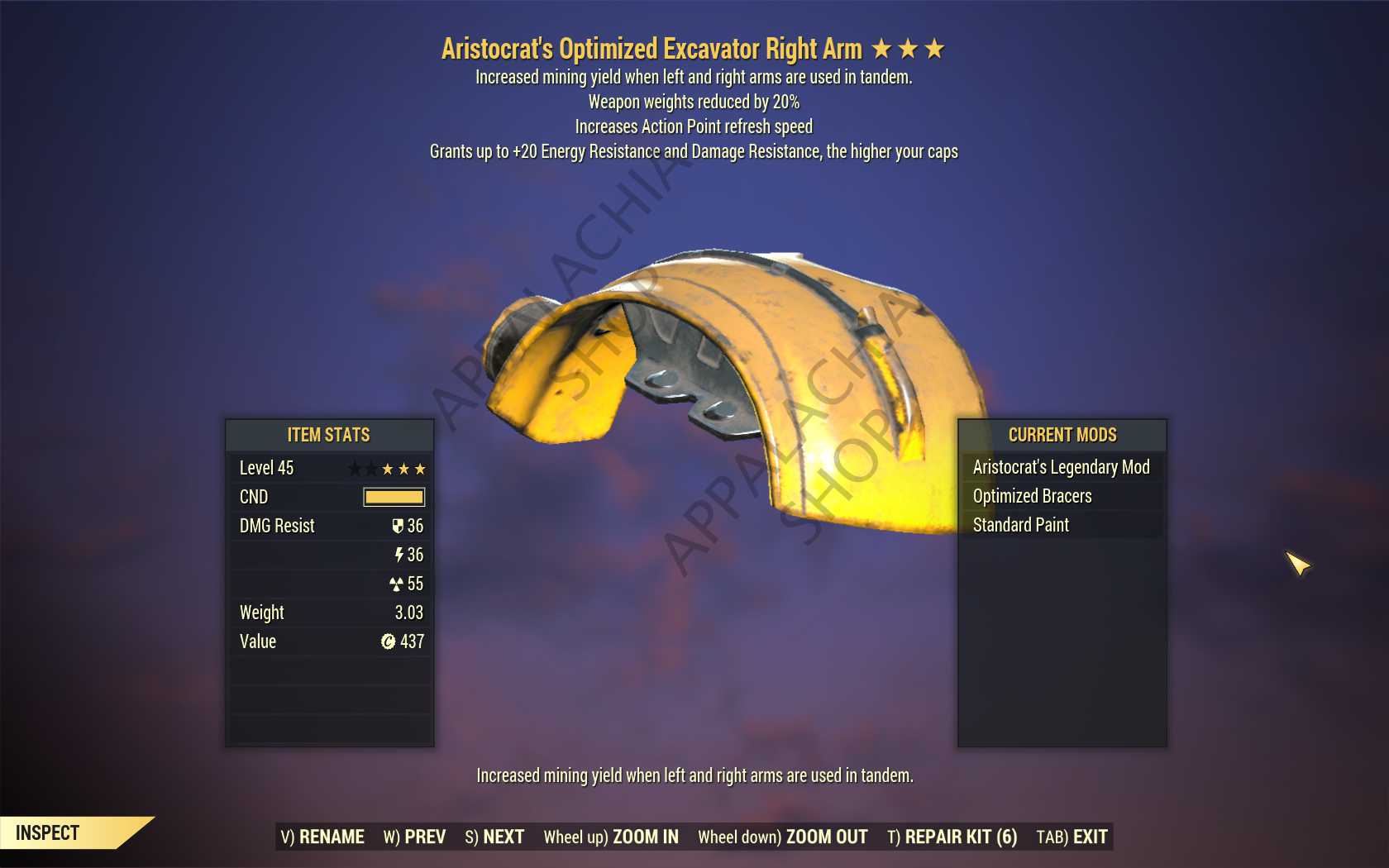 Aristocrat's Weapon weight Excavator SET (5/5 FULL AP REFRESH, FULL MODS)